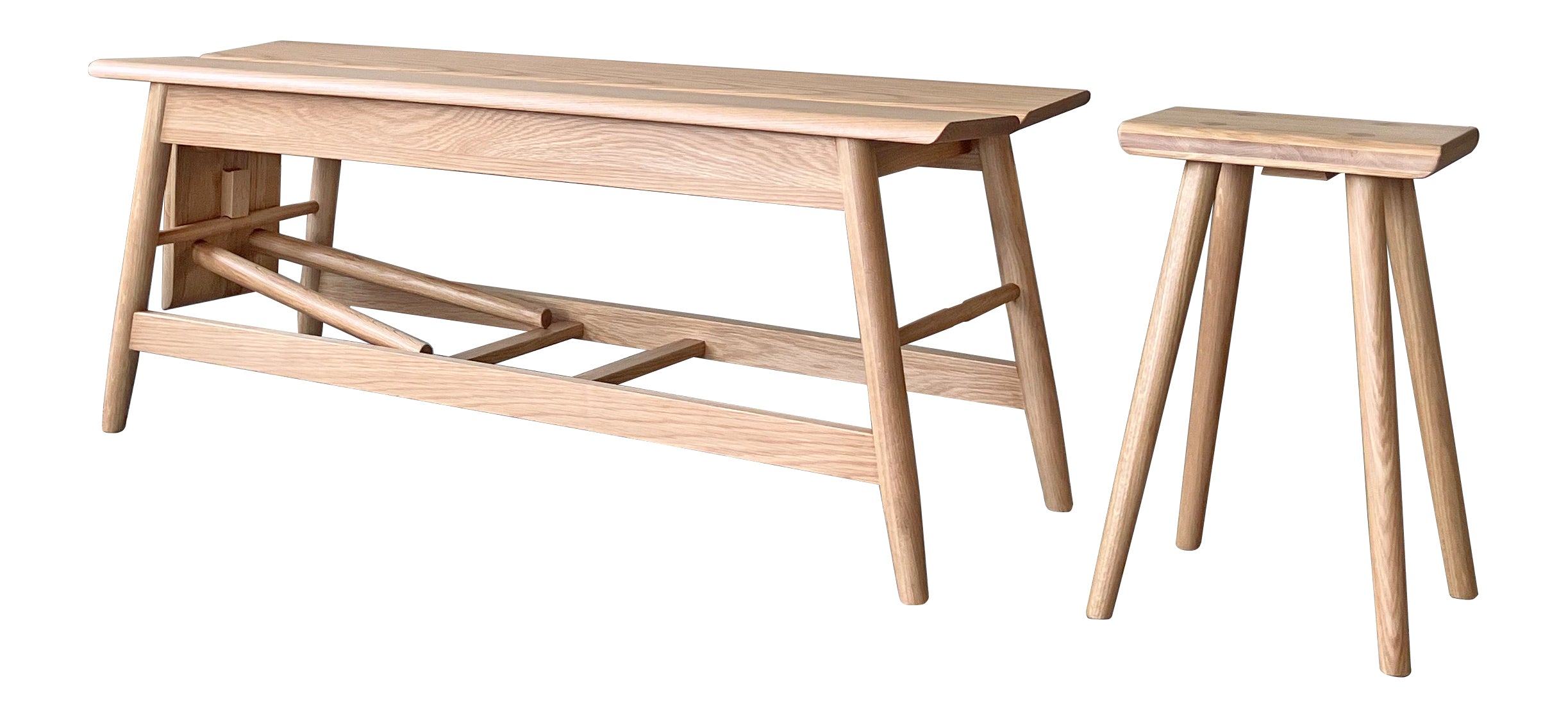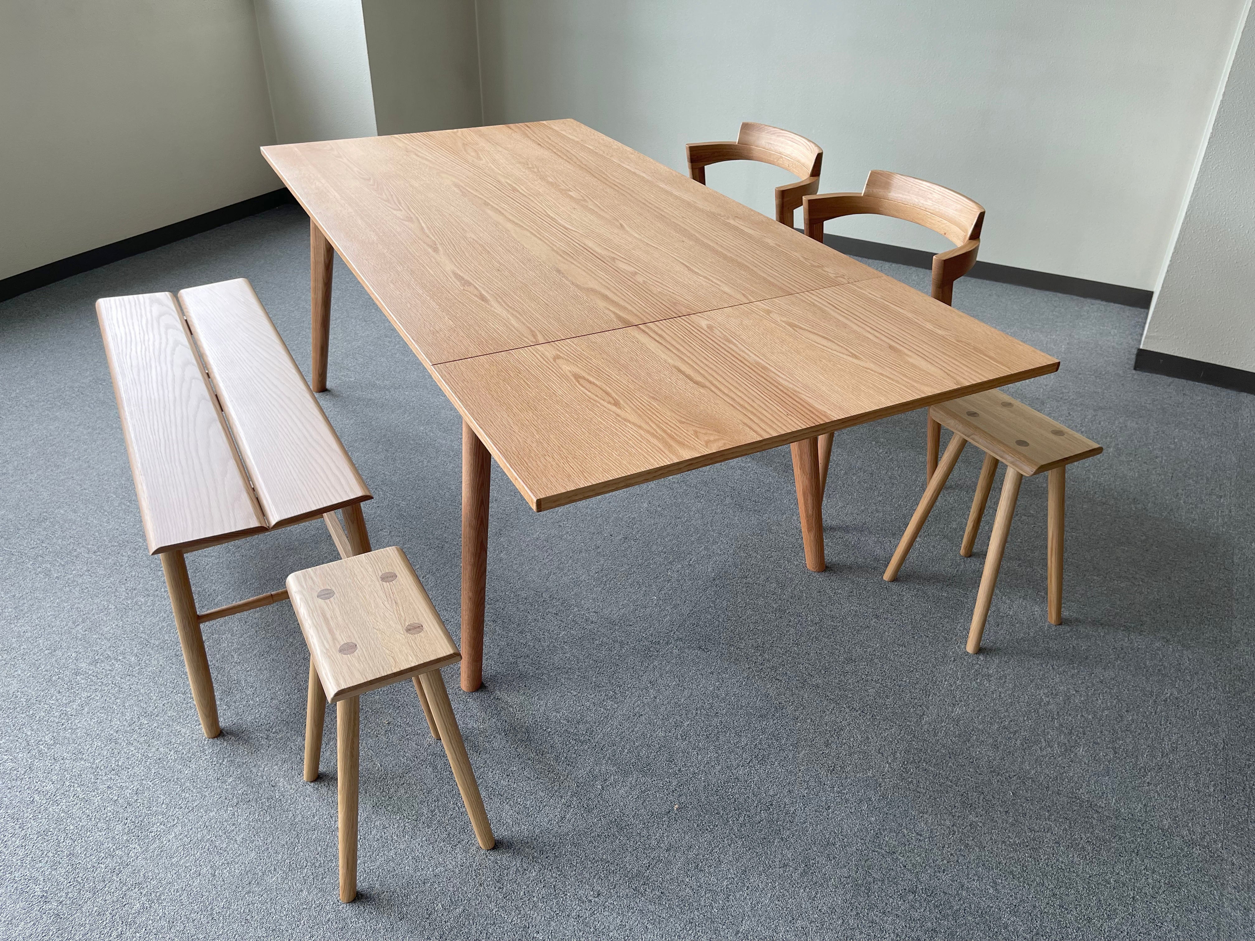 Garool Bench 1 張長櫈搭配 2 個櫈仔。這款實用長櫈可根據需要快速折疊和展開櫈仔,靈活適應使用人數的變化。
