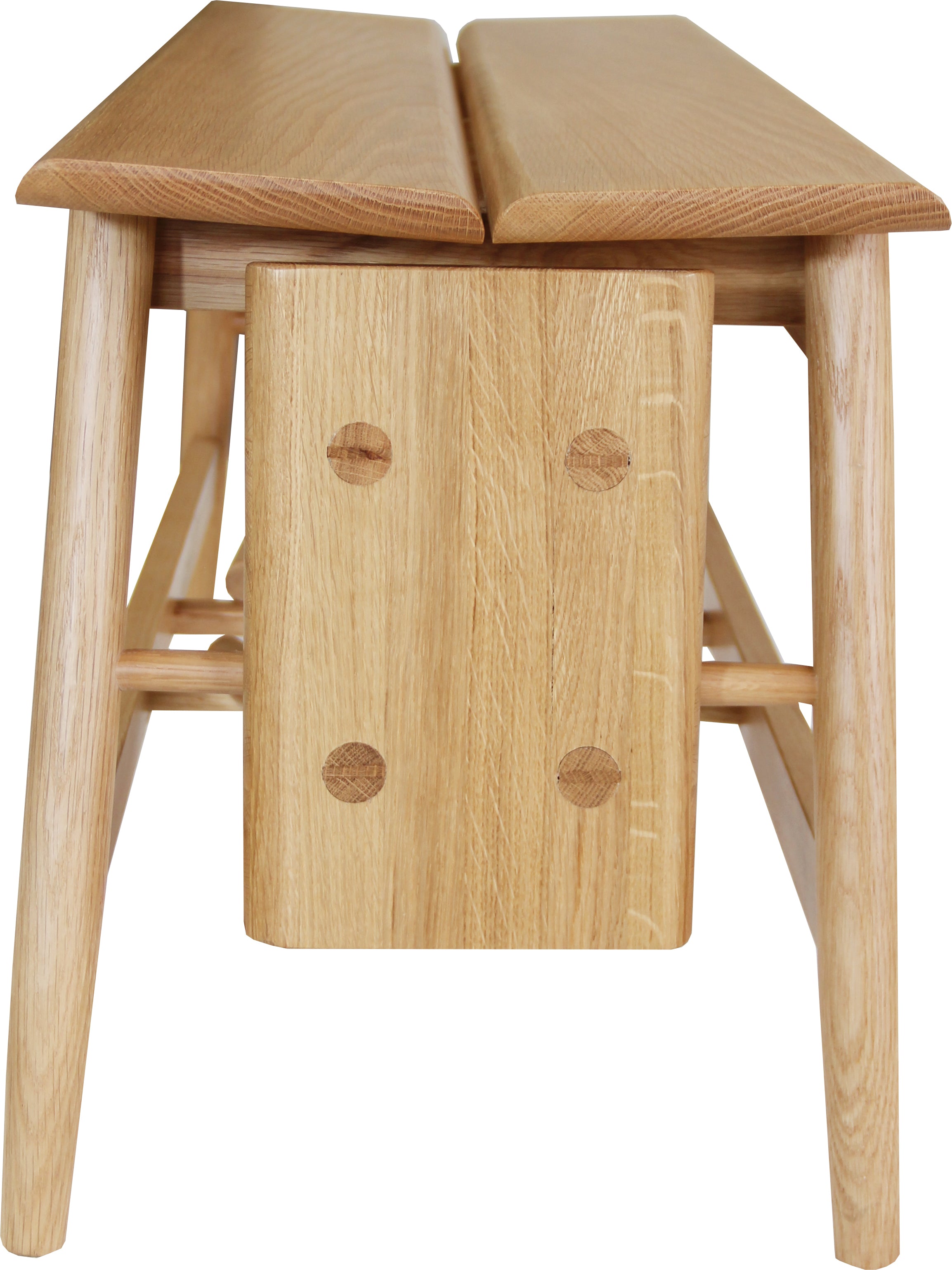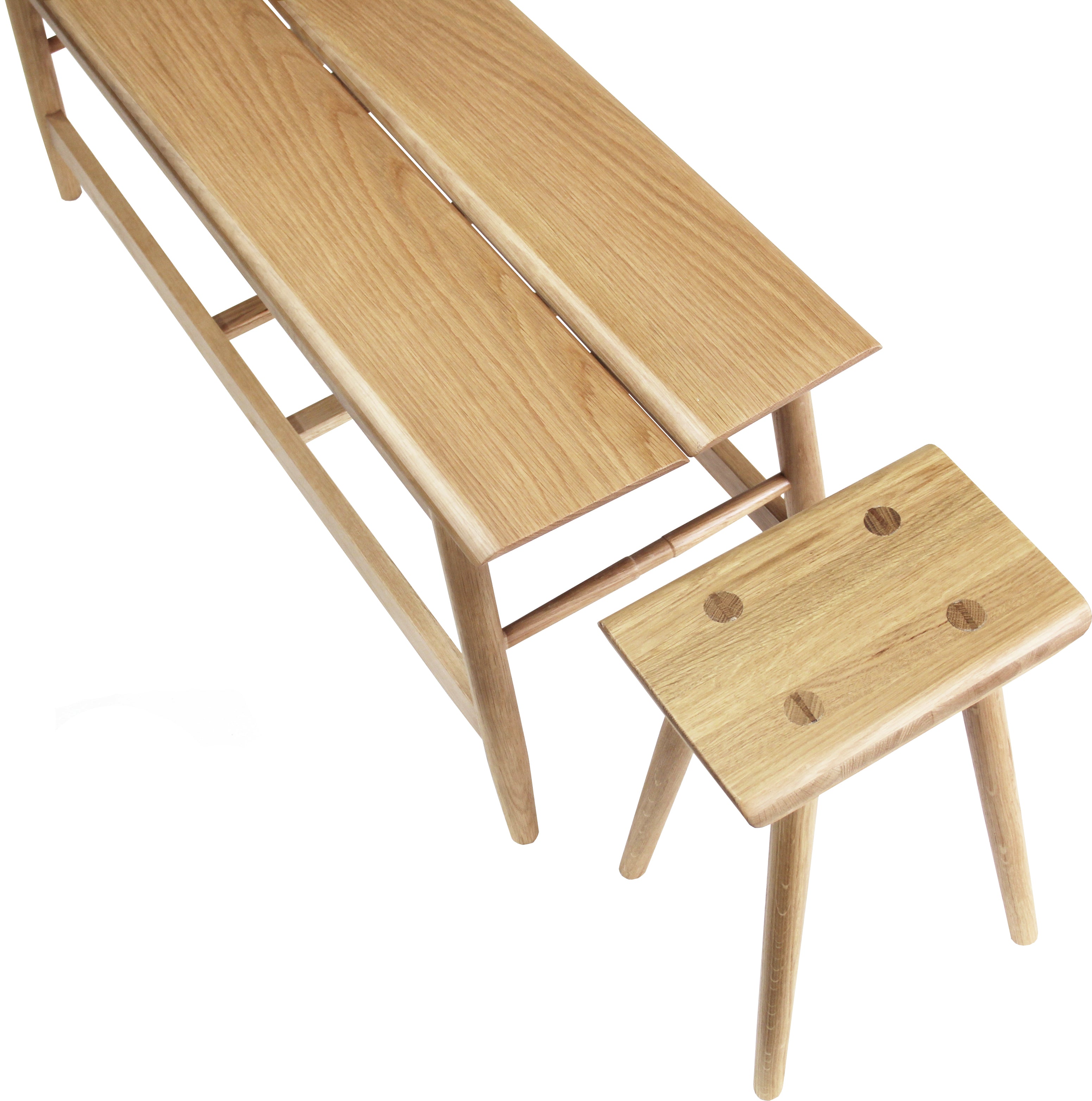櫈仔只需懸掛在長櫈上即可收納。它們輕巧便攜,是多功能的室內裝飾物,也可用作小桌子或其他桌面。