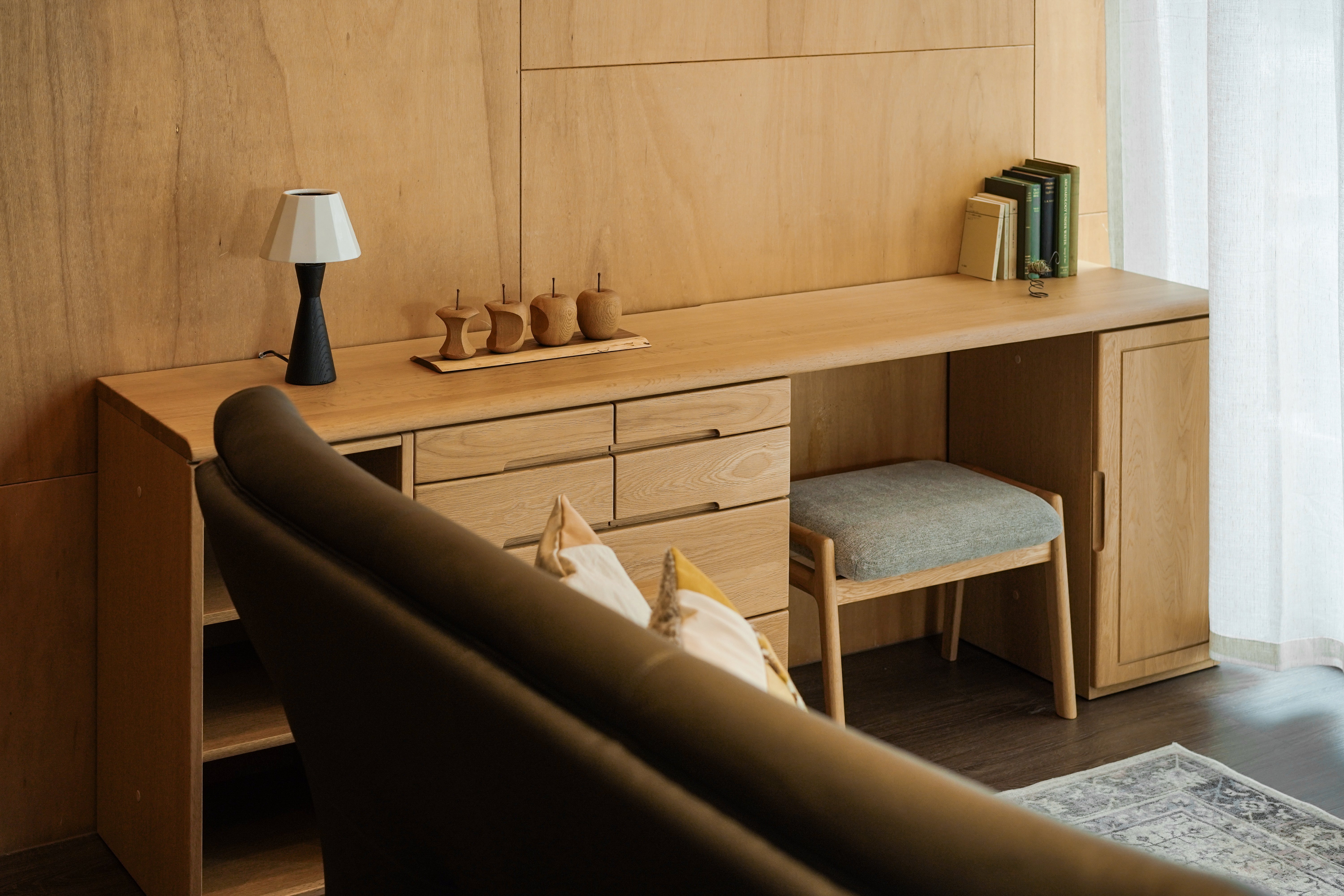 深度減小的纖細凳子。 圓潤的木頭手感舒適,給人以柔和的印象。 除了用作椅子外,它還可以用作腳凳。