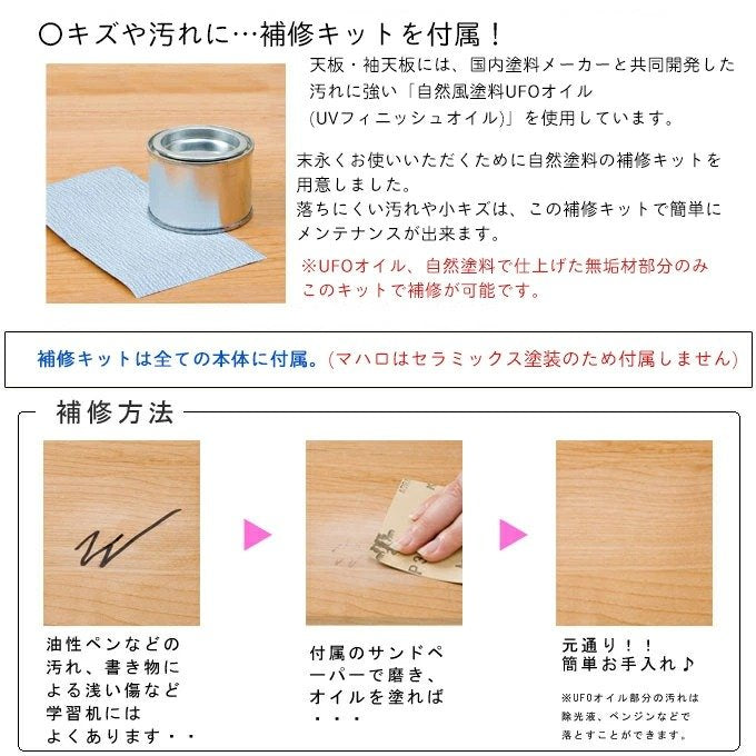 UFO oil: Natural wind paint (UV finish oil) that is resistant to dirt, used for desk tops