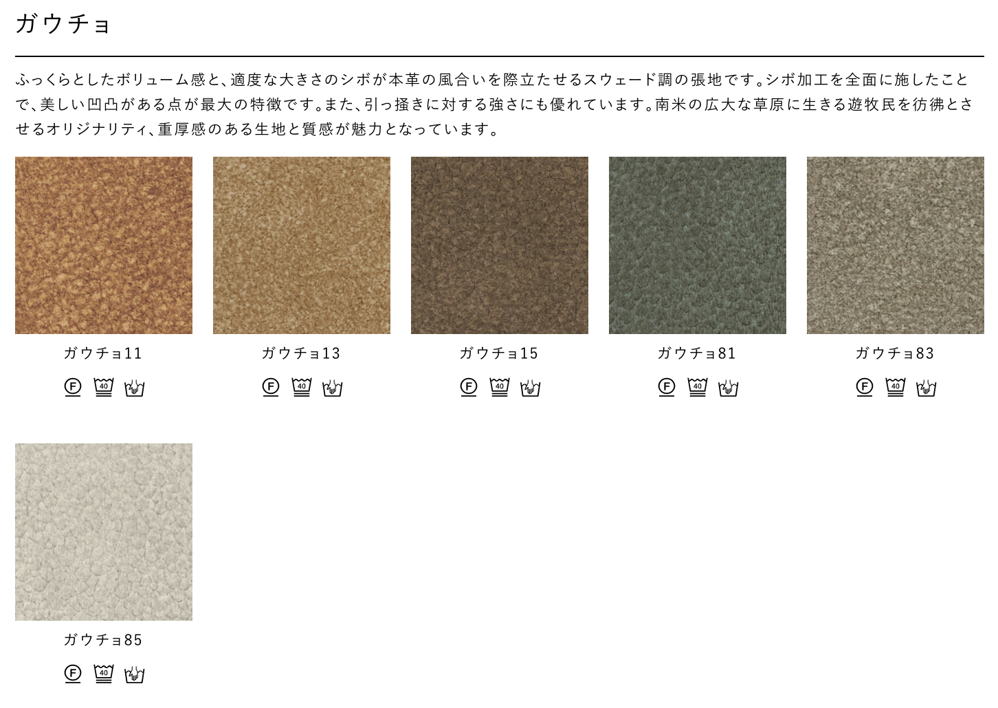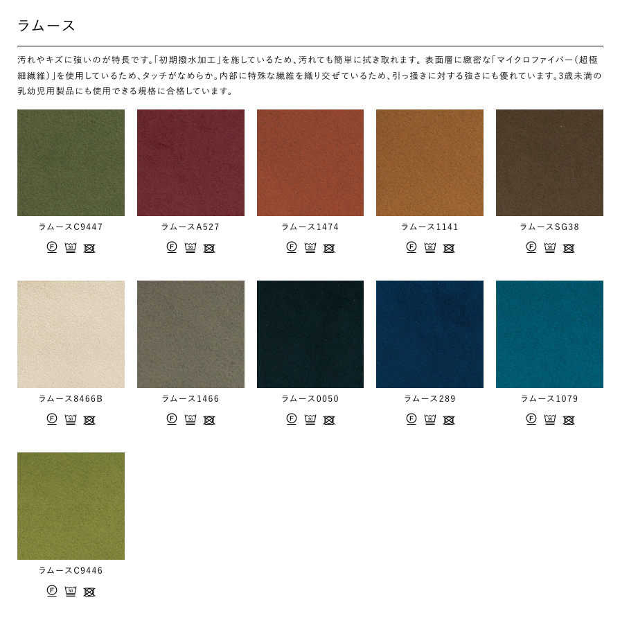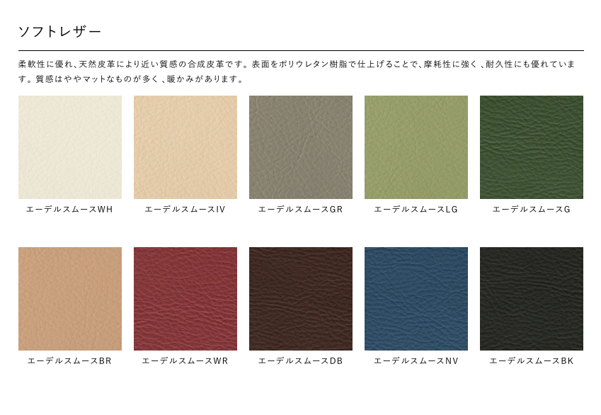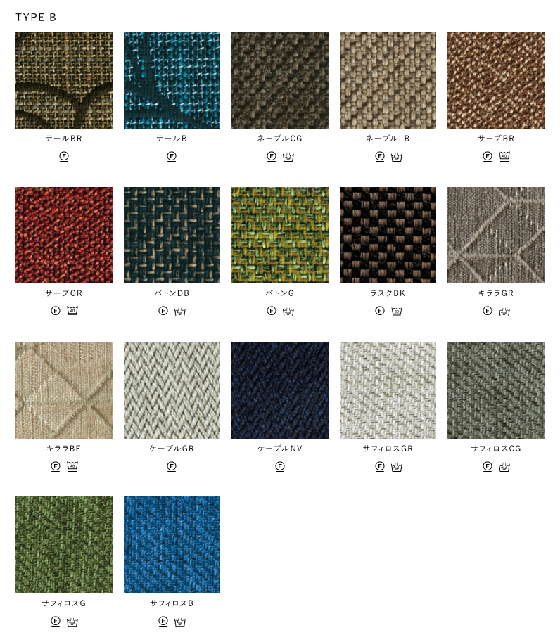 Fabric(Type A/ Type B) / Leather / Smooth Leather / Lamous / PVC-soft leather / Gaucho / Aqua Clean